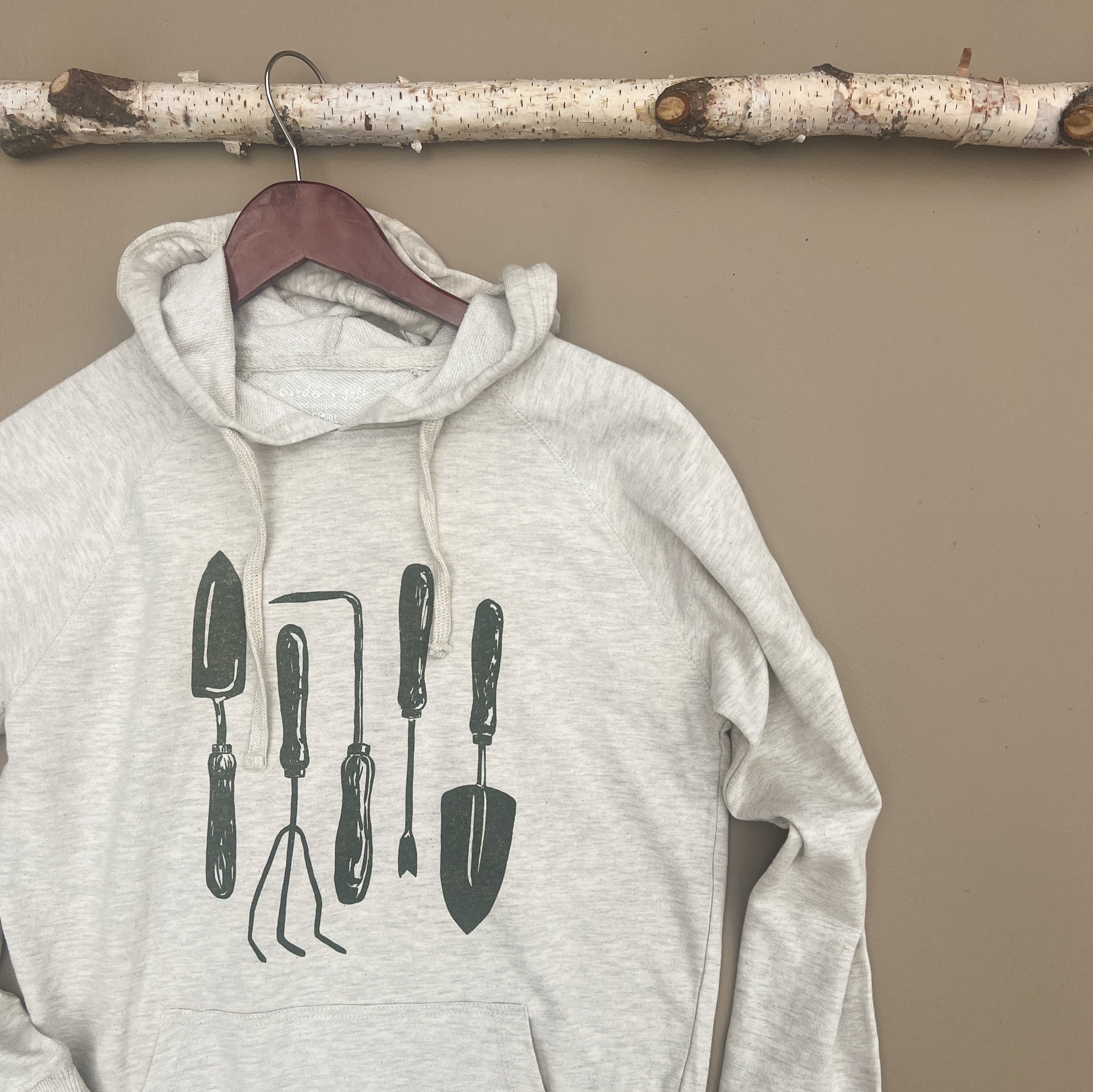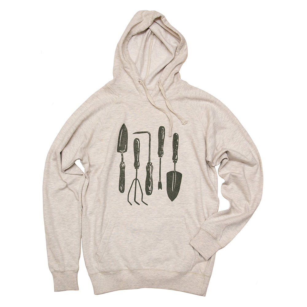 Each of our garden tools are hand drawn and composed for a bold graphic, but printed softly for a light, shadowy feel.