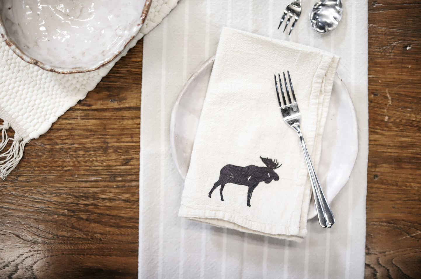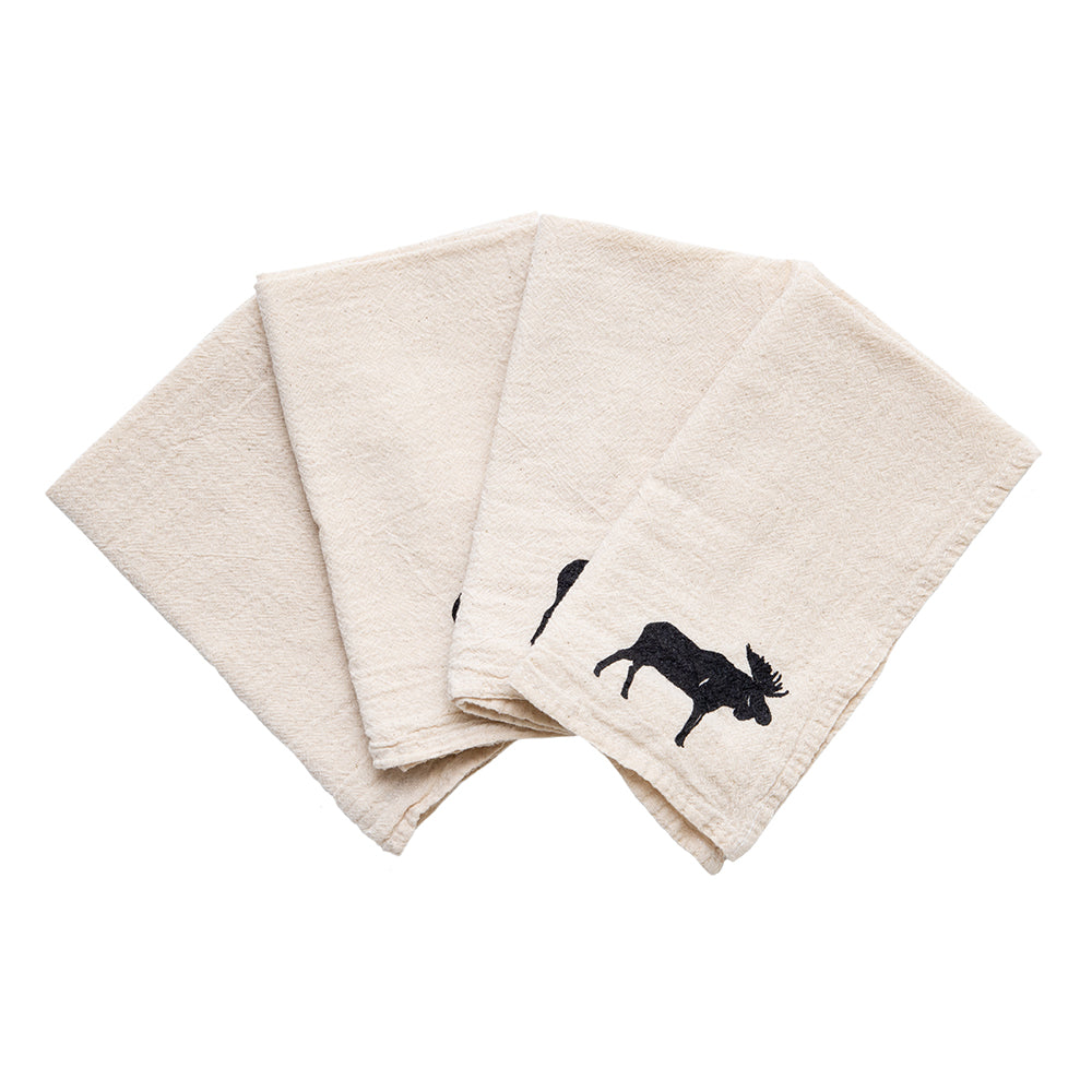 Set includes 4 hand-printed napkins and is tied with a heavy jute.